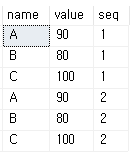 name으로 group by하여 최종적으로 원하는 결과를 얻습니다.