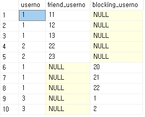 FROM (SELECT userno, friend_userno, null blocking_userno