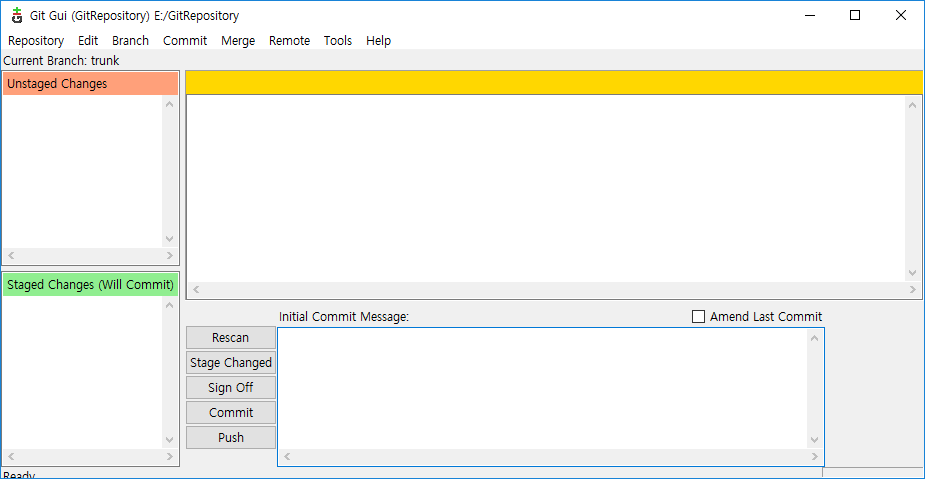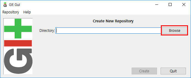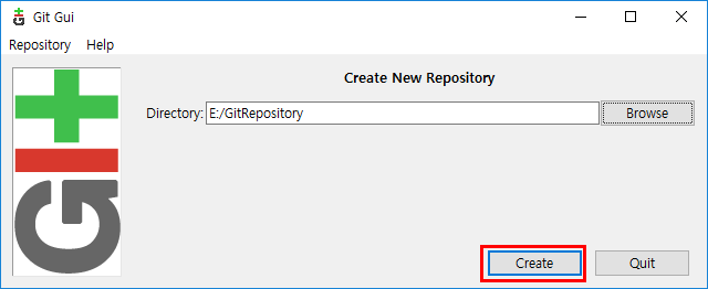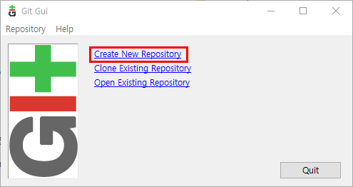 Git GUI가 실행되면 "Create New Repository"를 클릭합니다.