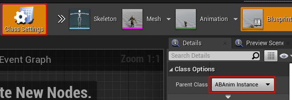 AnimBlueprint의 부모로 C++로 생성한 ABAnimInstance로 설정합니다.