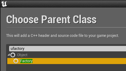 UFactor를 부모로 하여 MyCustomAssetFactory 클래스를 Editor 모듈에 생성합니다.