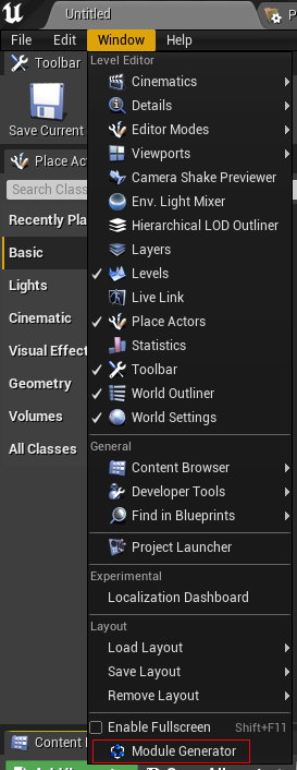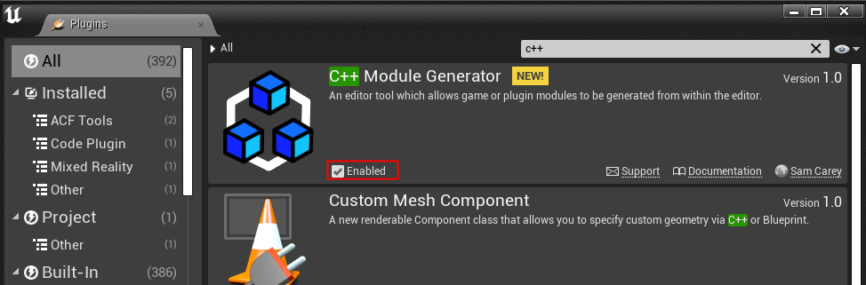설치 후 C++ Module Generator를 Enable 시키고 에디터를 다시 실행합니다.