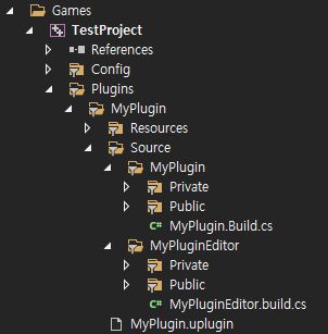 정상적으로 MyPlugin에 Runtime 모듈과 Editor 모듈이 추가 되어 있는 것을 볼 수 있습니다.