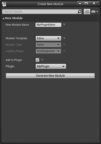 Moudle Generator를 사용하여 MyPlugin에 Editor Moudle을 추가하자.