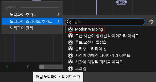 애님 그래프에서 Montion Warping 노티파이 스테이트를 추가합니다.