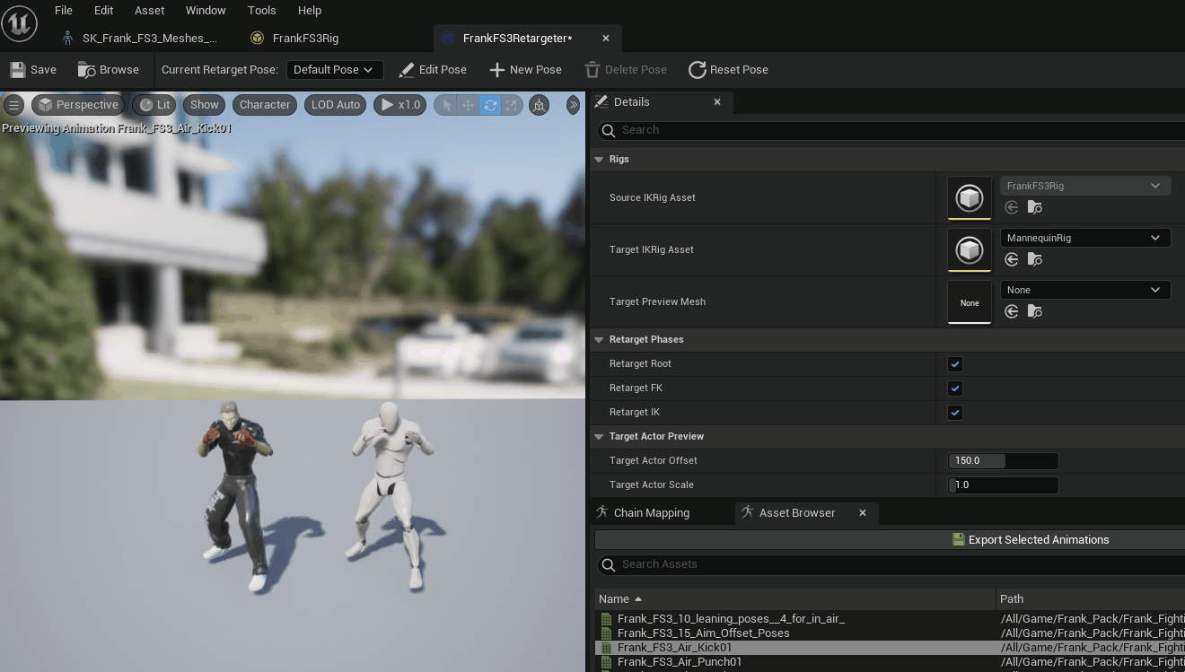 Frank 애니메이션을 언리얼 마네킹으로 리타겟을 해보겠습니다.