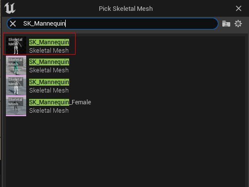 SK_Mannequin_Skeleton는 pelvis가 Animation이고 spine_01이하는 모두 Skeleton으로 설정되어 있습니다.