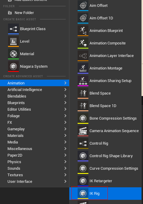 다음 단계는 소스 IK Rig와 타겟 IK Rig 파일을 만들어 줍니다.