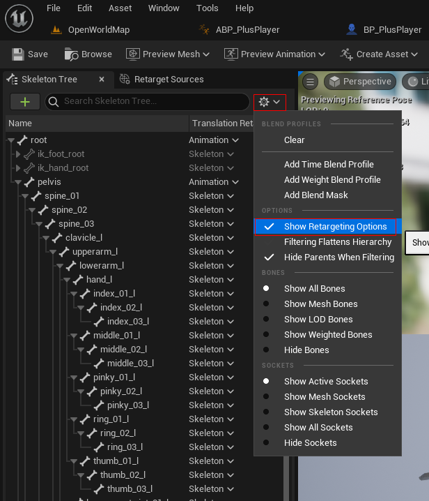 SK_Mannequin_Skeleton에서 Retargeting 옵션이 보이도록 합니다.