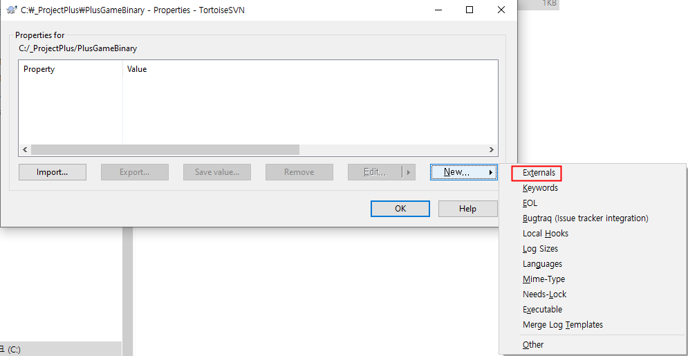 - 최종적으로 Properties에 다음과 같이 externals가 설정 됩니다.