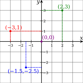 우리가 흔히 볼 수 있는 좌표계로 데카르트 좌표계가 있다. 철학자이자 수학자인 르네 데카르트가 천장을 날아다니며 옮겨붙는 파리를 통해 영감을 얻고 해당 좌표계를 발명했기에 데카르트의 이름이 붙어 있다. 2차원용의 데카르트 좌표계는 다음과 같다.