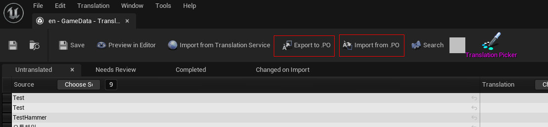 Edit Translation 아이콘을 눌러 Translation Editor를 실행합니다.