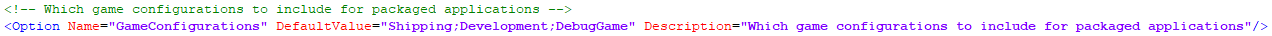GameConfigurations 옵션으로 Default값으로 "Shipping;Development;DebugGame"으로 되어 있습니다.