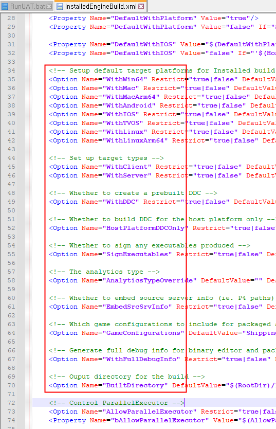 [UERoot]\Engine\Build\InstalledEngineBuild.xml 파일을 열어 봅시다.