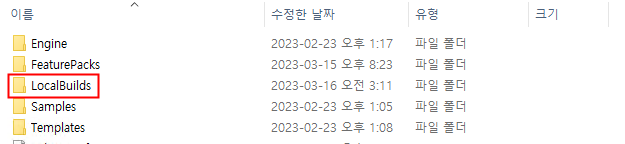 배치파일 실행이 모두 정상적으로 되었다면 LocalBuilds 폴더가 생겨 있는 것을 보실 수 있습니다.