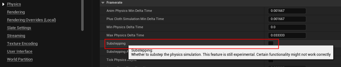 프로젝트 세팅에서 Substepping 옵션을 끕니다.