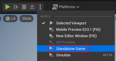 독립형 게임으로(Standalone Game) 실행 후 'Unreal Editor'를 최소화 합니다.