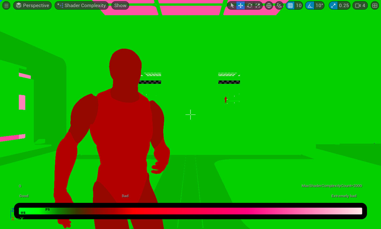 - 콘솔 명령 : viewmode shadercomplexity