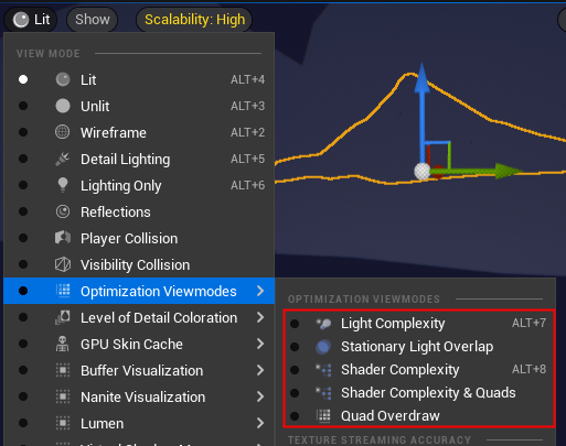 참고 : https://docs.unrealengine.com/5.1/ko/viewport-modes-in-unreal-engine/